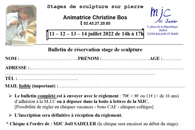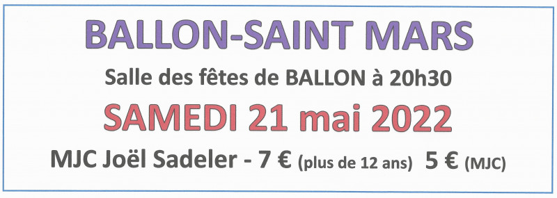 La Maison des Jeunes et de la Culture de Ballon (Sarthe), créée en 1967, vous présente pour sa 58ème année, ses multiples activités sportives, culturelles et de loisirs. La M.J.C. Joël Sadeler est gérée par des bénévoles et ses activités sont encadrées par des animateurs professionnels compétents.